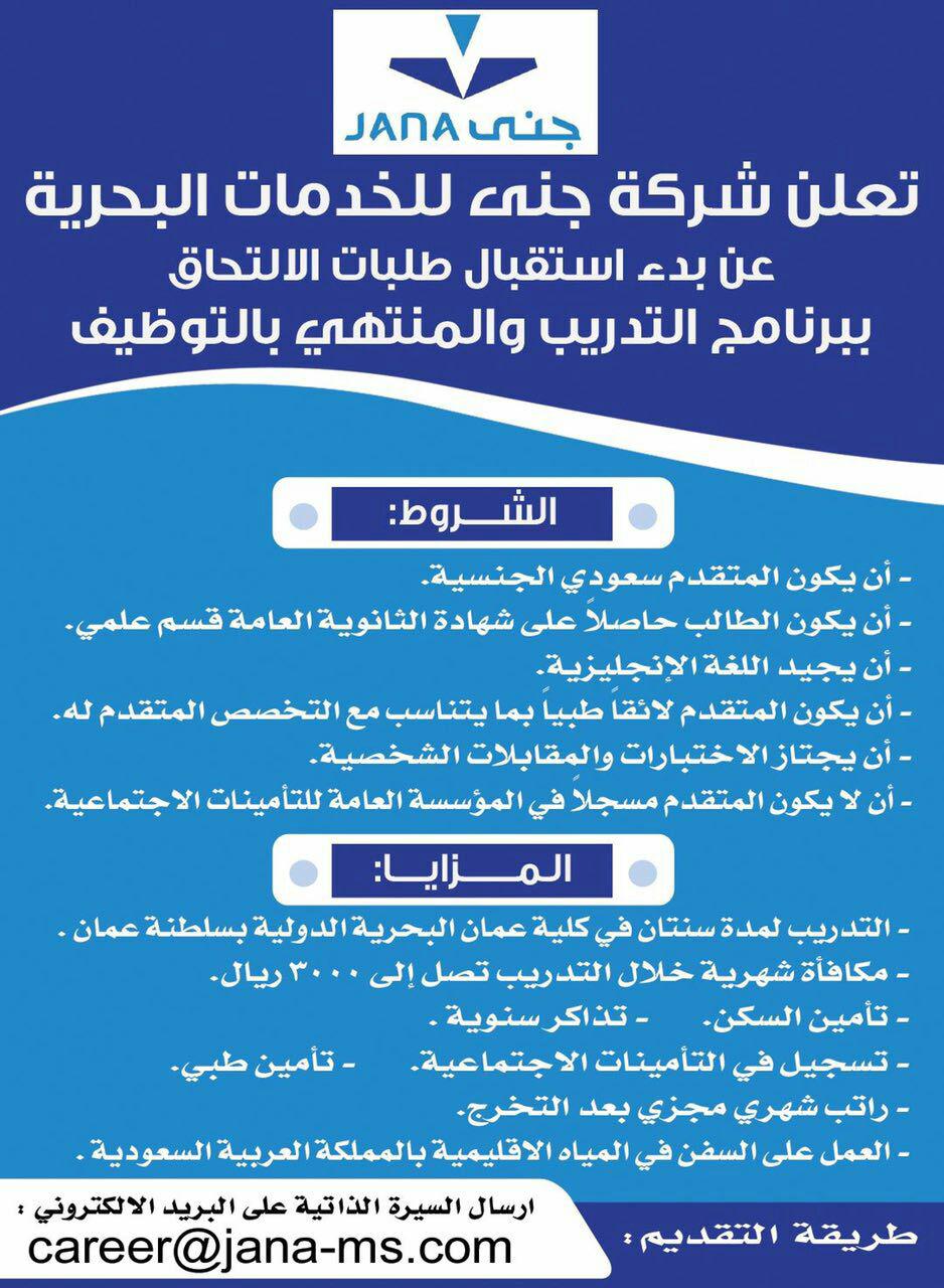 السعودي للتوظيف برنامج تدريب منتهي بالتوظيف في شركة جنى للخدمات البحرية