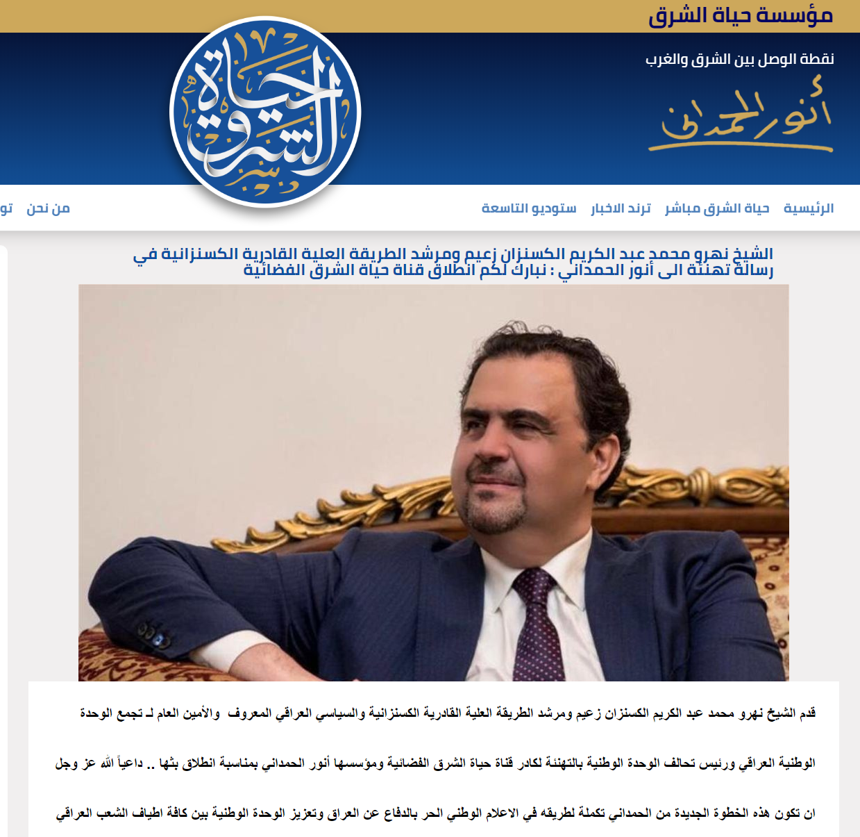 أنور الحمداني يطلق قناة حياة الشرق الفضائية بجهود شخصية Hayat Al Sharq